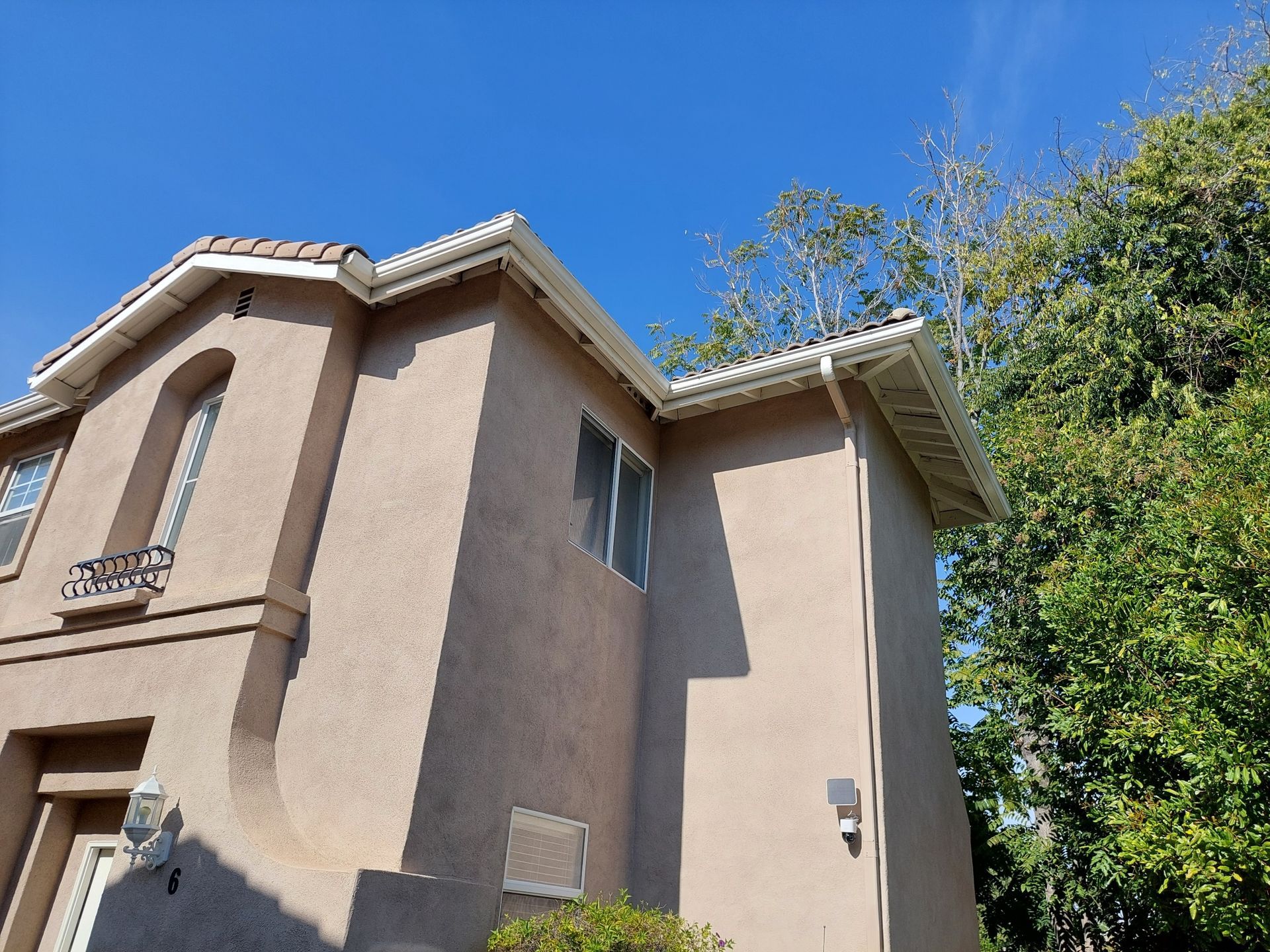 Tan/beige outer walls calls for darker gutters to pop. And no, Jon didn't pop and crack climbing the ladder, he's old but not that old.